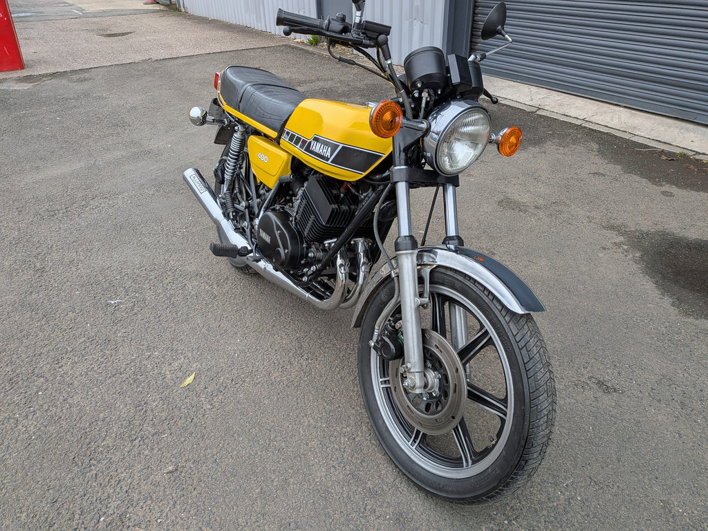 RD400 F 1979 , UK bike, Matching numbers, very low mileage (5k) lovely example with lots of standard and restored parts. (including New genuine front mudguard) Nice easy starter and good runner in excellent overall condition, not completely standard (allspeed exhausts) but close. Tool kit present , Excellent seat pan with original cover. Engine has been overalled/rebuilt. 2 Keys, old MOT's till 2001, not been used much since.